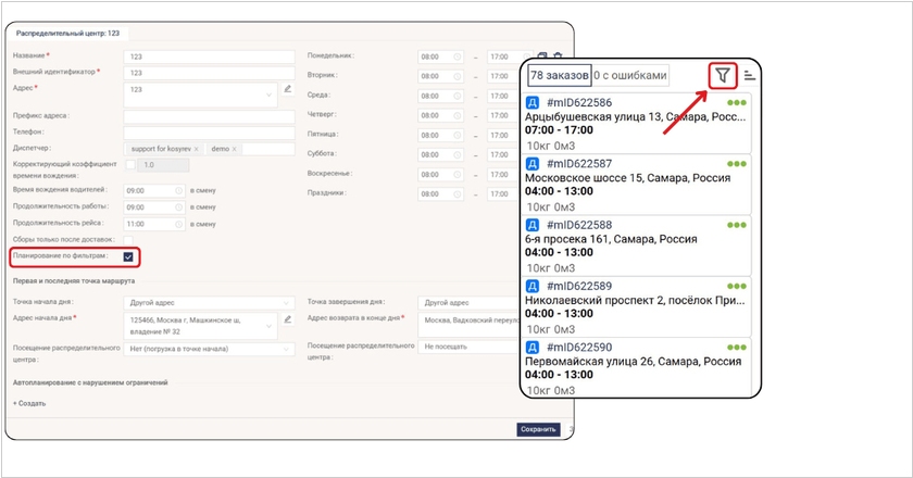 Платформа автоматизации логистики ШЕДЕКС внедрила гибкую фильтрацию заказов и транспортных средств по ключевым параметрам: приоритет доставки, географическая зона, тип груза, характеристики ТС. Система автоматически скрывает нерелевантные элементы, формируя точный список для планирования. Логисты получают ускорение обработки задач на 20%, оптимальную загрузку автопарка и минимизацию ошибок при назначении маршрутов. Дополнительно реализована визуализация территорий в карточке заказа с названиями, границами и цветовой маркировкой зон, что упрощает верификацию адресов. Тёмная тема Яндекс.Карт снижает утомляемость операторов при многочасовой работе. Решение повышает прозрачность логистических процессов и снижает нагрузку на диспетчерские службы.